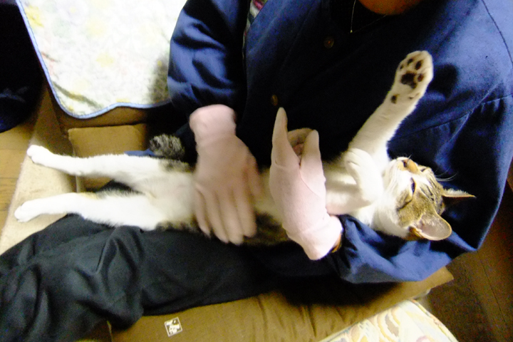 いつも病院には二匹いっしょに連れて行くのですが、こないだミーコだけ病院に連れて行ったら、異様にビビッていました。シマがいないとダメなのか。